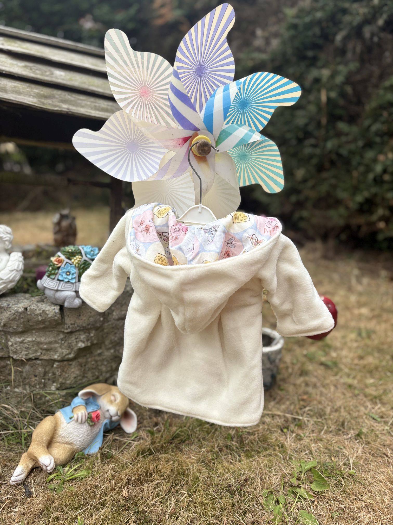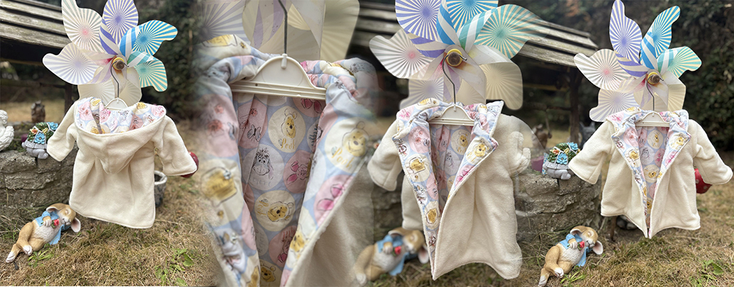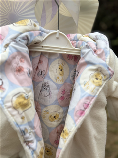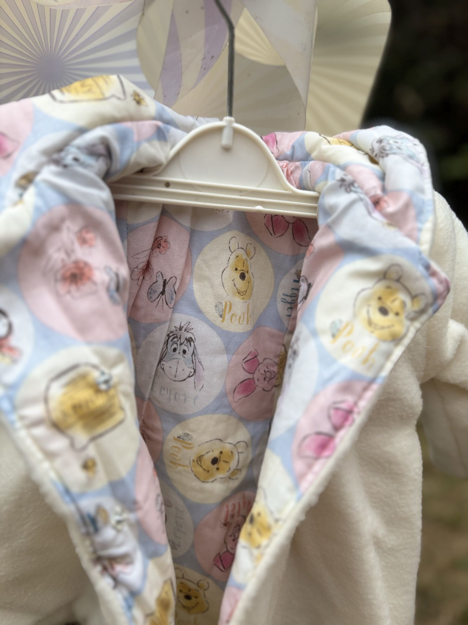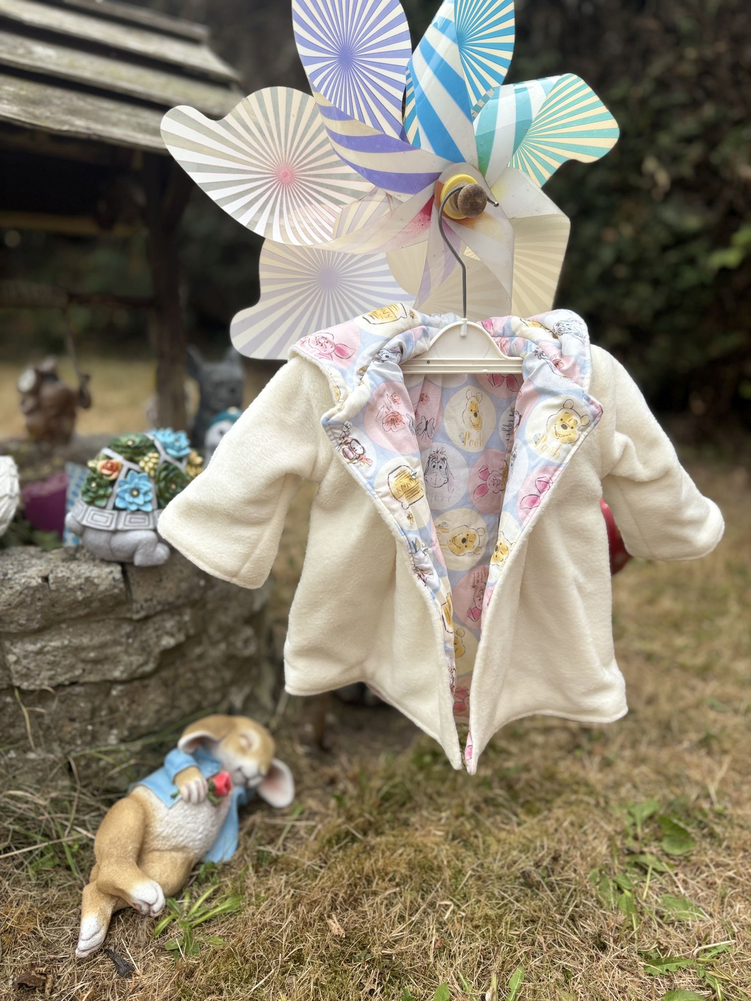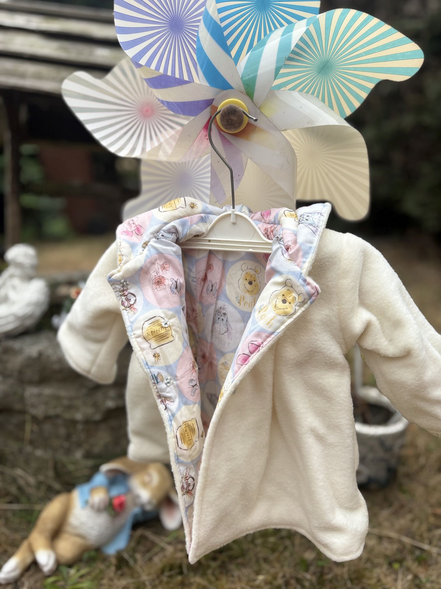 Wrap your little one in cosy comfort and timeless charm with this beautifully made baby coat. Crafted from soft cream fleece and lined with sweet Pooh Bear & Friends Circles fabric, it offers two adorable looks in one thanks to its fully reversible design.