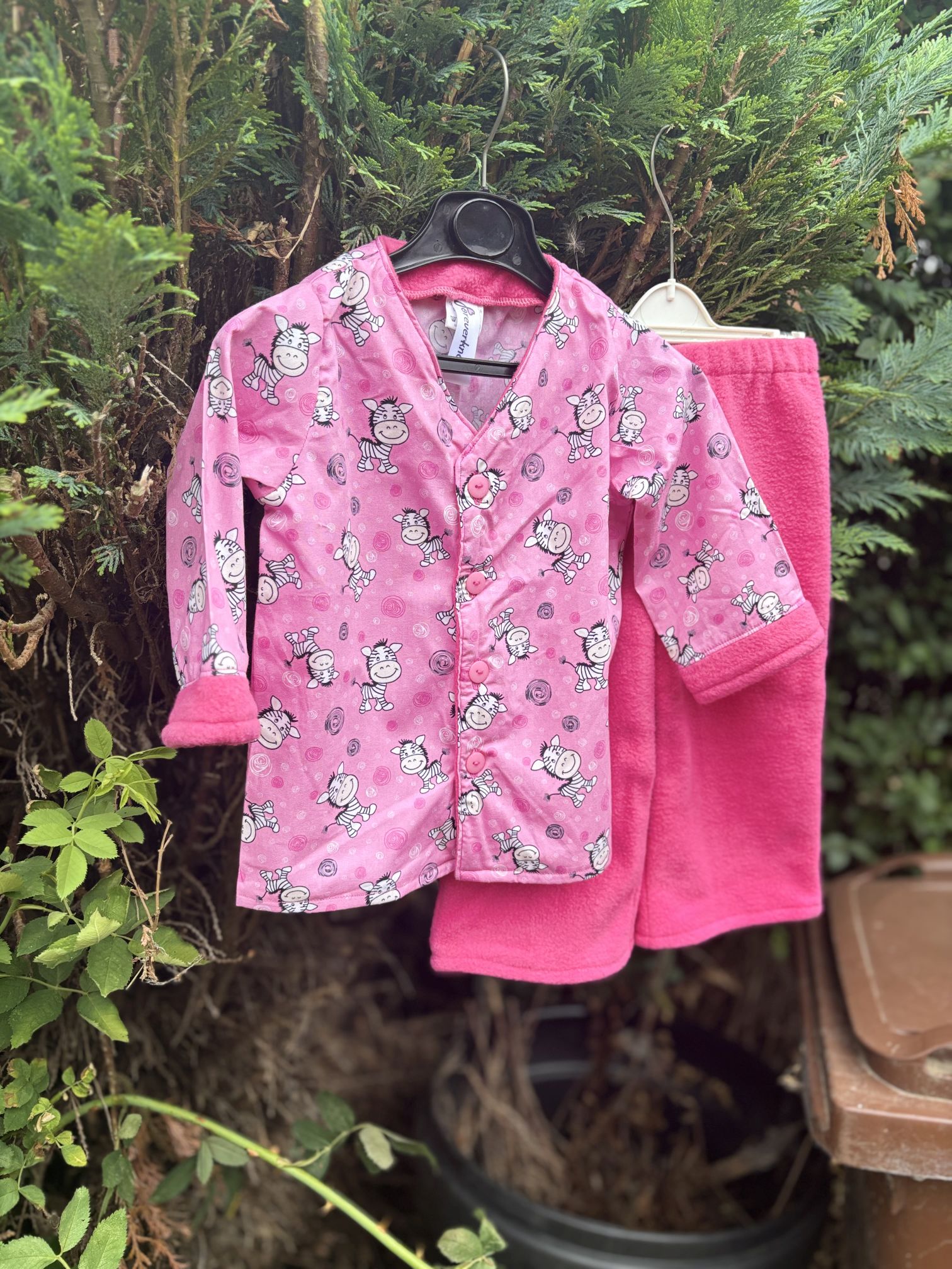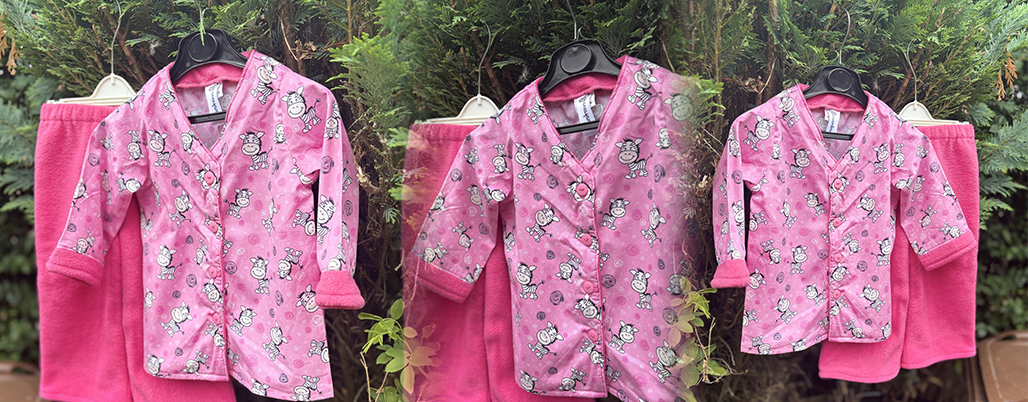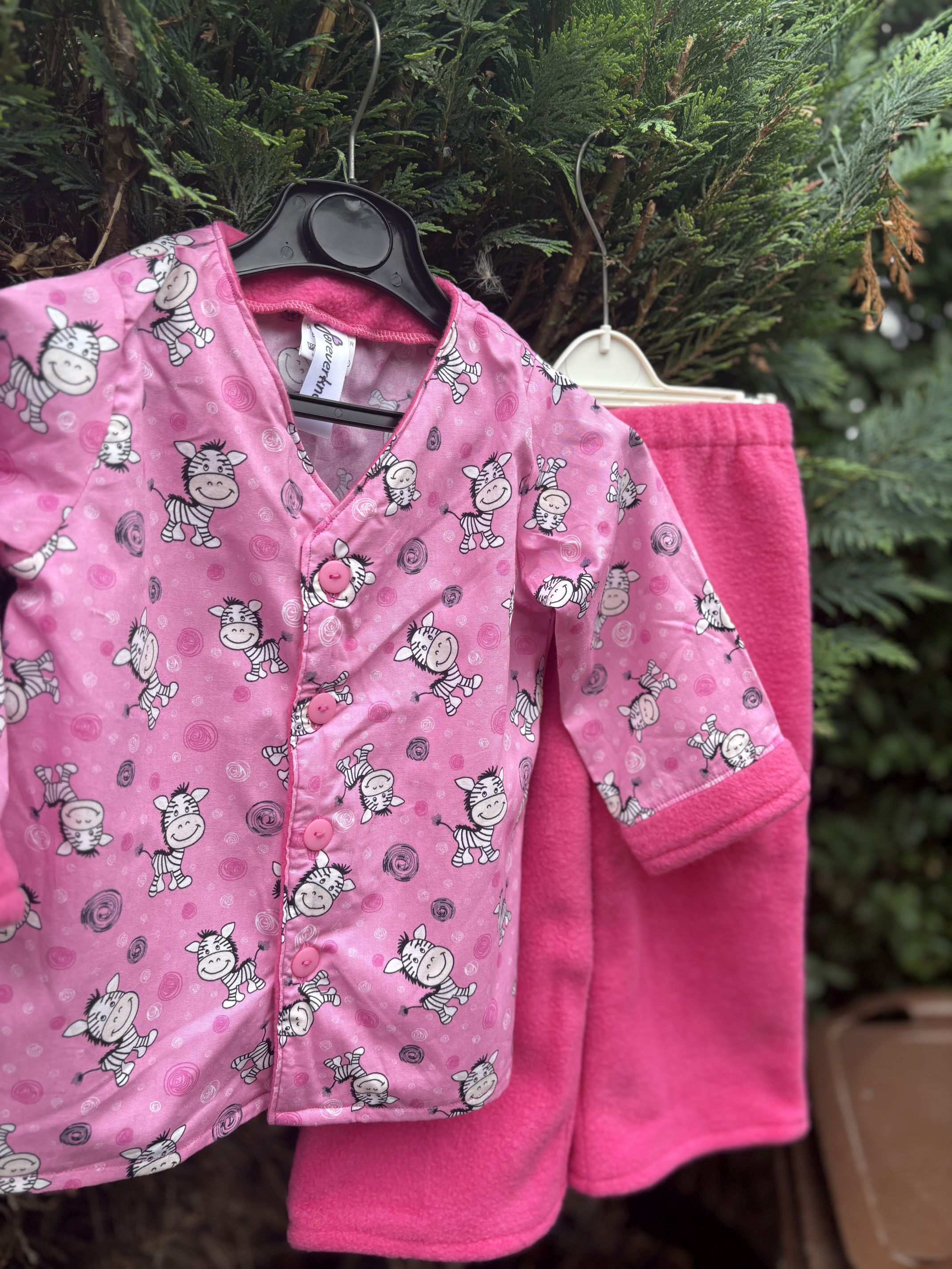 Our snuggle pyjamas are made from charming pink zebra-print fabric paired with matching pink polyester fleece, ensuring your child stays cosy and comfortable all night long. They even feature hidden pockets!