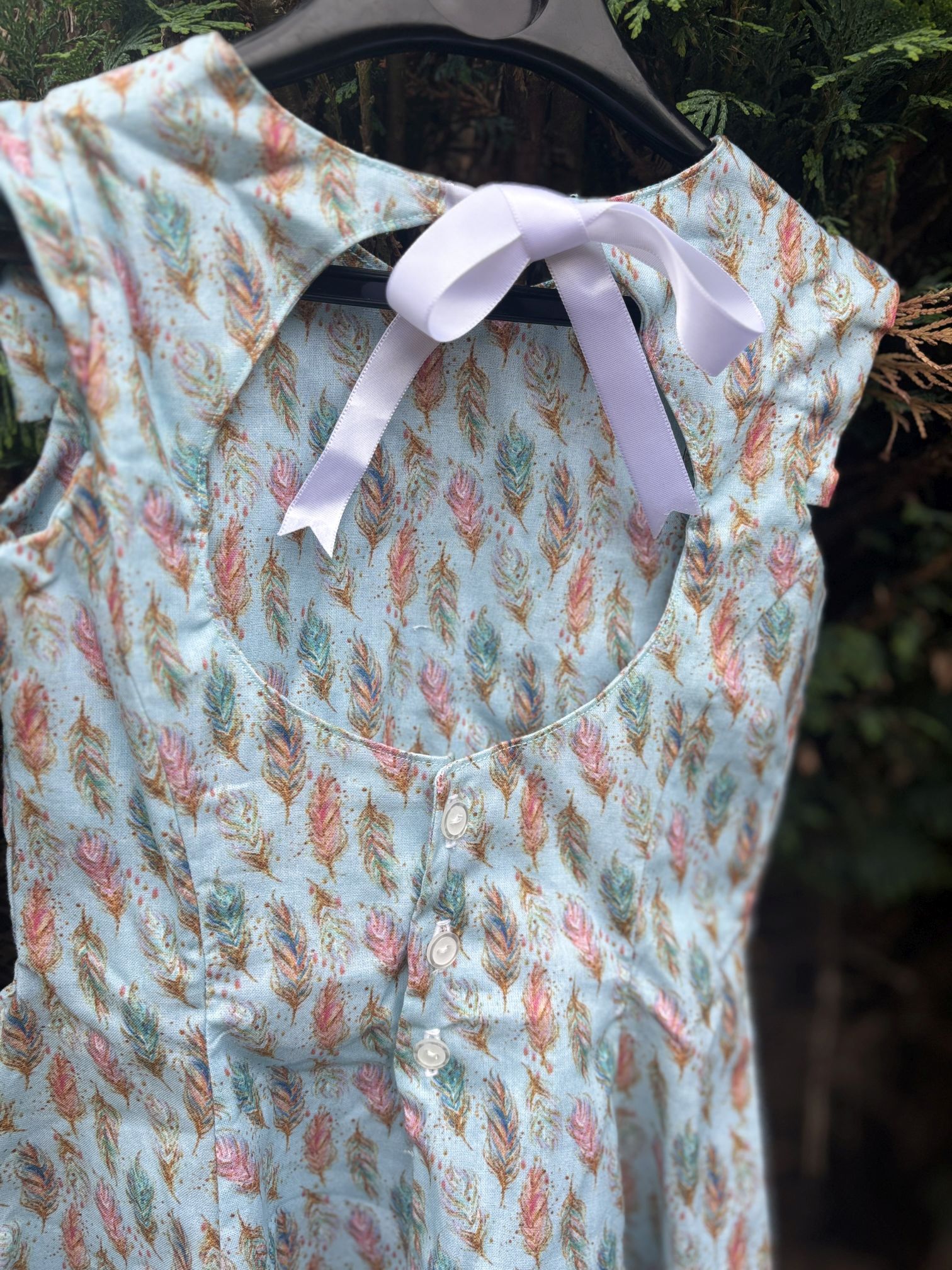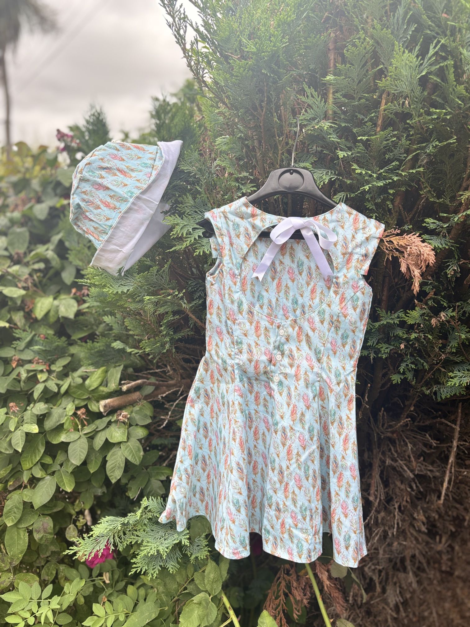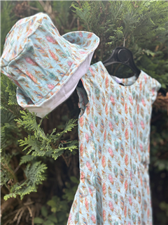 Peacock Proud is a chic Juliette outfit crafted from luxurious peacock cotton fabric. This thicker material ensures the fitted parts of the dress hold their shape perfectly.