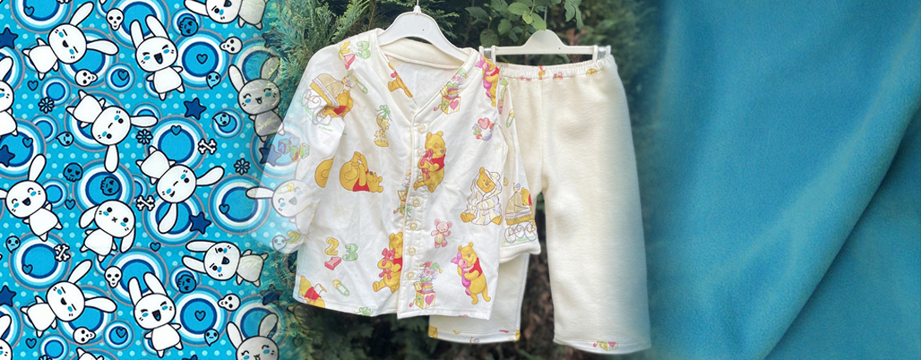 A super cute and snuggly set of pyjamas featuring blue raving bunny cotton and cosy blue fleece — perfect for bedtime cuddles!